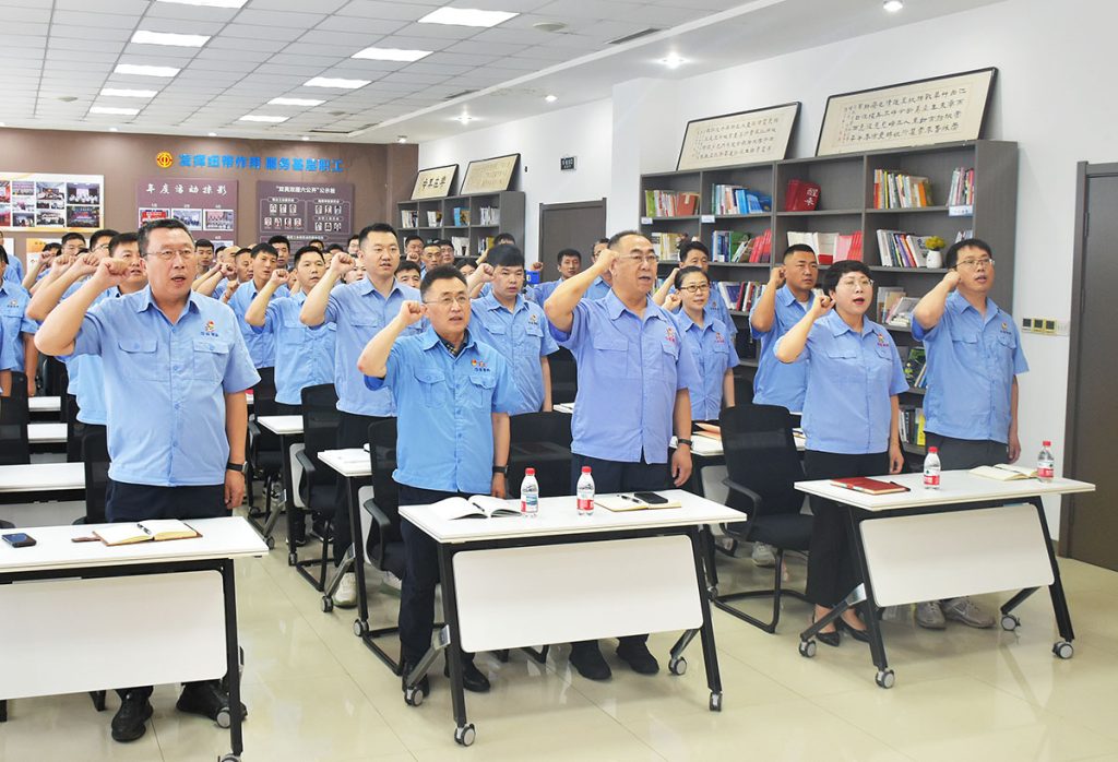 活動(dòng)在激昂的國歌聲中拉開帷幕,全體人員莊嚴(yán)肅立,齊聲高唱國歌,用嘹亮的歌聲表達(dá)對黨的忠誠與熱愛,對祖國的美好祝福。緊接著,在公司黨委委員、安裝公司黨支部書記張博的帶領(lǐng)下,全體黨員高舉右拳,重溫入黨誓詞:“我志愿加入中國共產(chǎn)黨,擁護(hù)黨的綱領(lǐng),遵守黨的章程……隨時(shí)準(zhǔn)備為黨和人民犧牲一切,永不叛黨?!秉h員們聲音洪亮、擲地有聲,以飽滿的熱情和昂揚(yáng)的姿態(tài),展現(xiàn)出對黨的堅(jiān)定信仰與為黨的事業(yè)奮斗終身的決心。