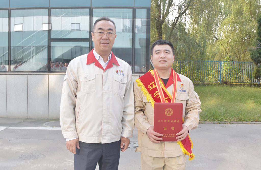 在儀式上,黨委書(shū)記、董事長(zhǎng)宋彪為劉權(quán)頒發(fā)了遼寧省勞動(dòng)模范的榮譽(yù)證書(shū)及獎(jiǎng)?wù)隆?/p>
