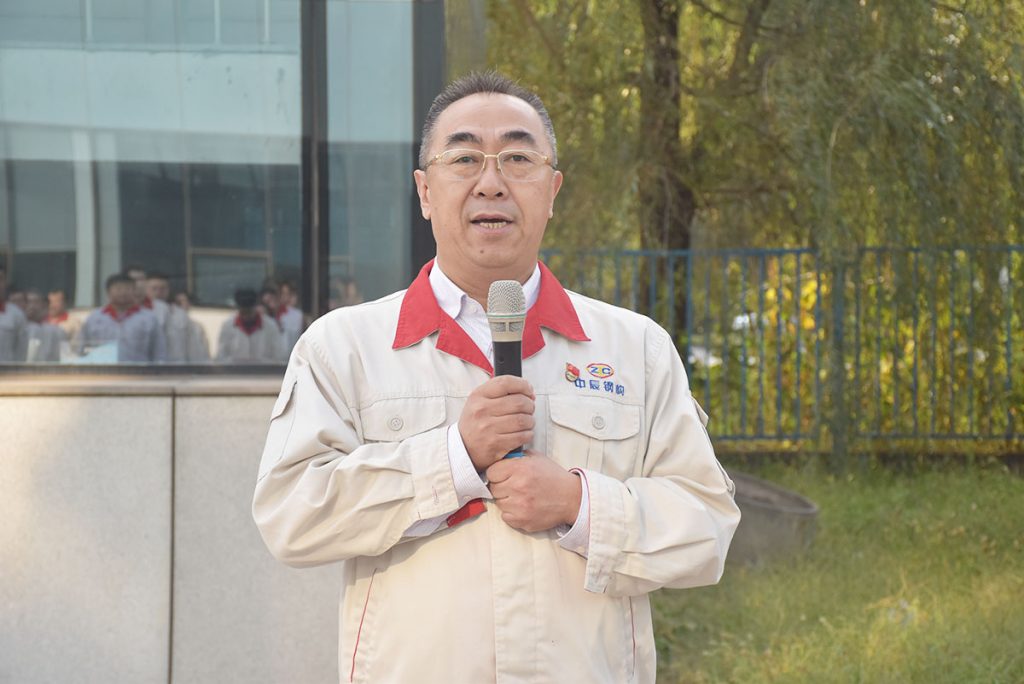 黨委書(shū)記、董事長(zhǎng)宋彪講到,今天慶祝偉大祖國(guó)成立73周年,同時(shí)我們?cè)诼≈氐纳靸x式中感受偉大祖國(guó)走過(guò)73年所取得的輝煌成就。在國(guó)歌聲中,感受到我們時(shí)刻需要每一個(gè)中辰人,中辰人始終在競(jìng)爭(zhēng)激烈的商場(chǎng)上萬(wàn)眾一心,冒著“敵人的炮火”前進(jìn)。中辰鋼構(gòu)也即將成立20周年,新的使命擺在我們面前,需要每一個(gè)員工永遠(yuǎn)保持謙虛、謹(jǐn)慎、不驕、不躁、艱苦奮斗、勇往直前的作風(fēng)。在這個(gè)激烈的市場(chǎng)競(jìng)爭(zhēng)中,通過(guò)我們自身不斷地努力,以市場(chǎng)需求為導(dǎo)向,增強(qiáng)服務(wù)客戶價(jià)值的本領(lǐng),增強(qiáng)持續(xù)創(chuàng)造客戶價(jià)值的能力。祝愿我們偉大祖國(guó)更加繁榮昌盛,祝愿中辰鋼構(gòu)興旺發(fā)達(dá),祝愿每一個(gè)中辰鋼構(gòu)的員工幸??鞓?lè)、健康平安。