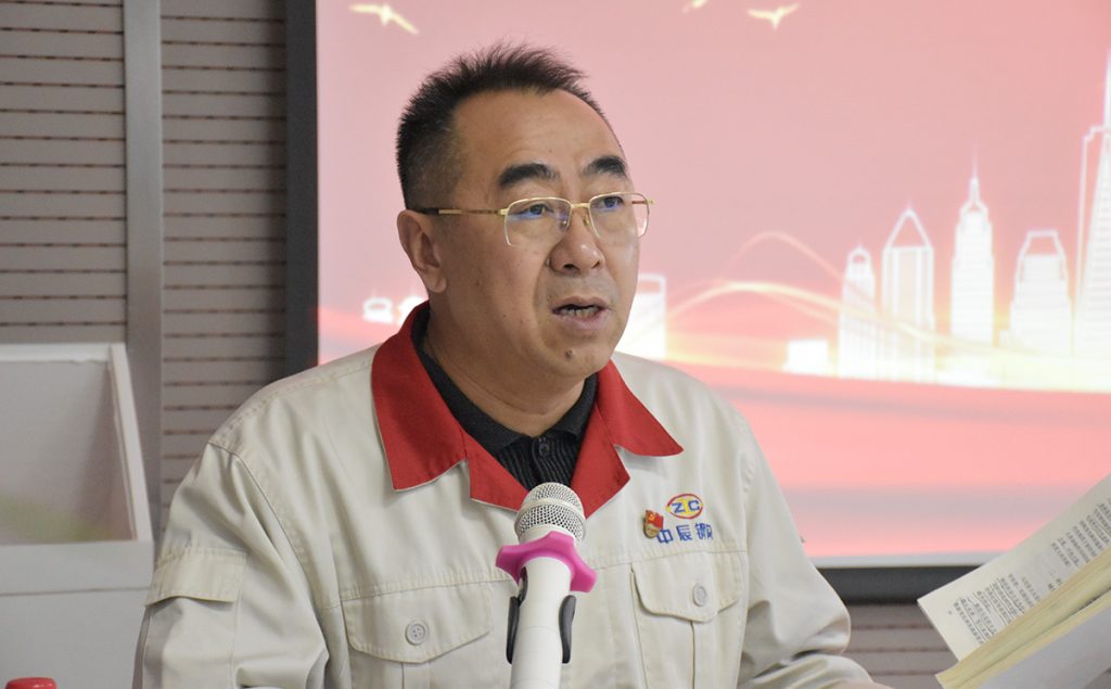 學習會議第一項:中辰鋼構(gòu)黨委委員、總經(jīng)理盧兆會帶領大家共同學習二十大報告第一部分——過去五年的工作和新時代十年的偉大變革。